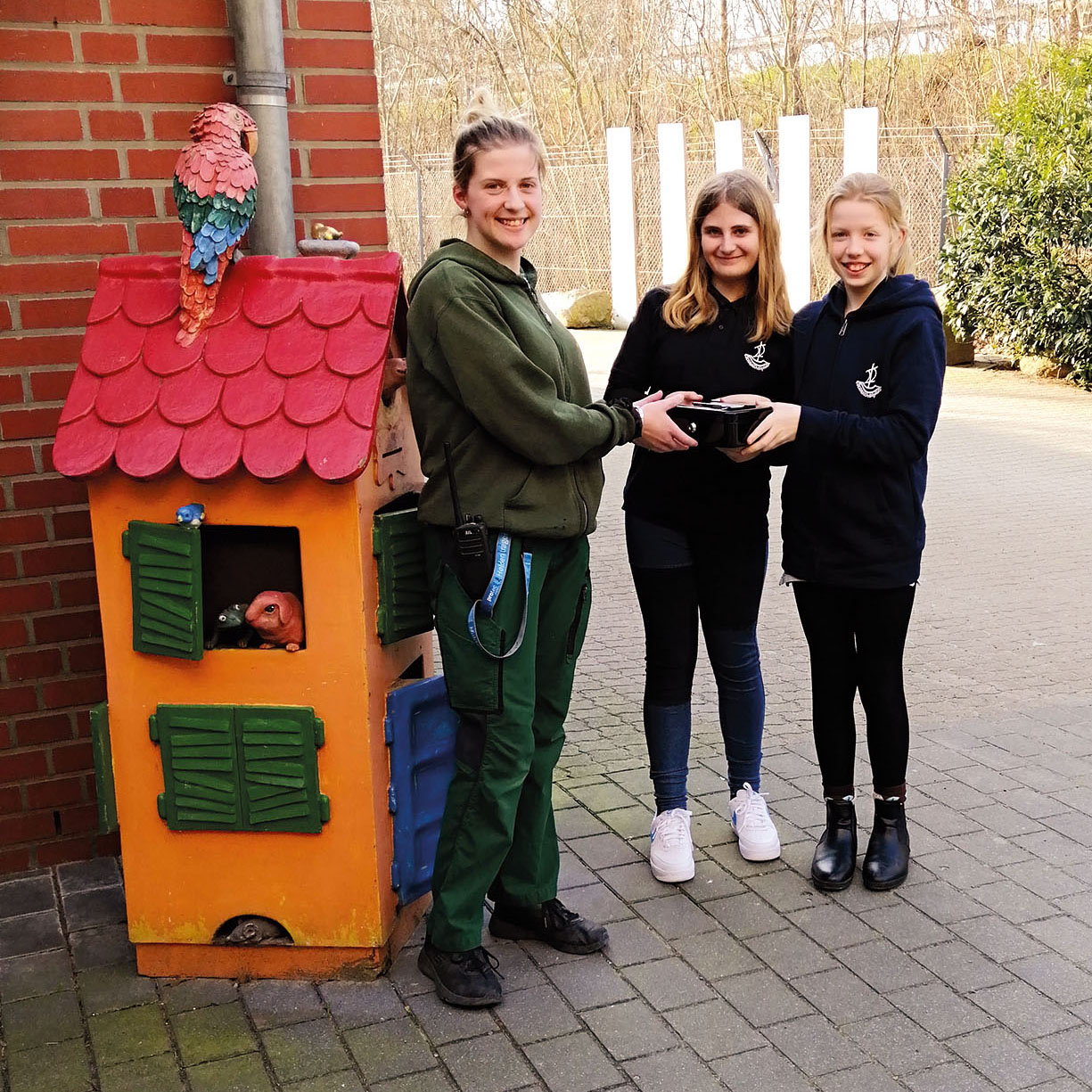 Stellvertretend für die Klasse 5A übergaben die Schülerinnen Sophie und Sophia die Spende an unsere Auszubildende, Frau Görtz, überreicht.